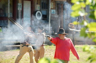 What a trooper! Only two days after getting out of the horsespital with a scare with the ole ticker, Joe Stout was back in action Saturday night at Sipokni West Old West Movie Town. And Joe showed up with a new and wilder look for the skit "Fowl Play". It's great to have Joe back in action and feeling better.Sunday, July 13, 2008